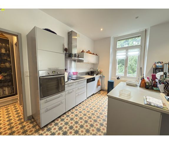 Dans un environnement calme et verdoyant, situé au 1er étage d'une élégante maison de maître, cet appartement de 110 m2 séduit par ses beaux volumes et son accès direct à une agréable terrasse de 25 m2. Il se compose d'une entrée, d'un spacieux séjour, d'une cuisine indépendante, de deux chambres, d'une salle de bains et d'un WC séparé.