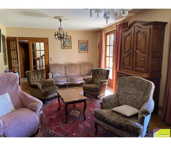 Maison spacieuse d'environ 200 m2 sur 2 niveaux, située sur un terrain arboré de 17 ares avec piscine. Elle comprend au rez-de-chaussée une entrée, une chambre, une salle de bain, un WC, une cuisine indépendante, un salon, séjour avec parquet. À l'étage, vous trouverez trois belles chambres, une salle de bain et un WC indépendant. Sous-sol avec cave et buanderie. Garage double. Des travaux de rénovation sont à prévoir, mais l'emplacement dans un quartier prisé en fait une opportunité unique !